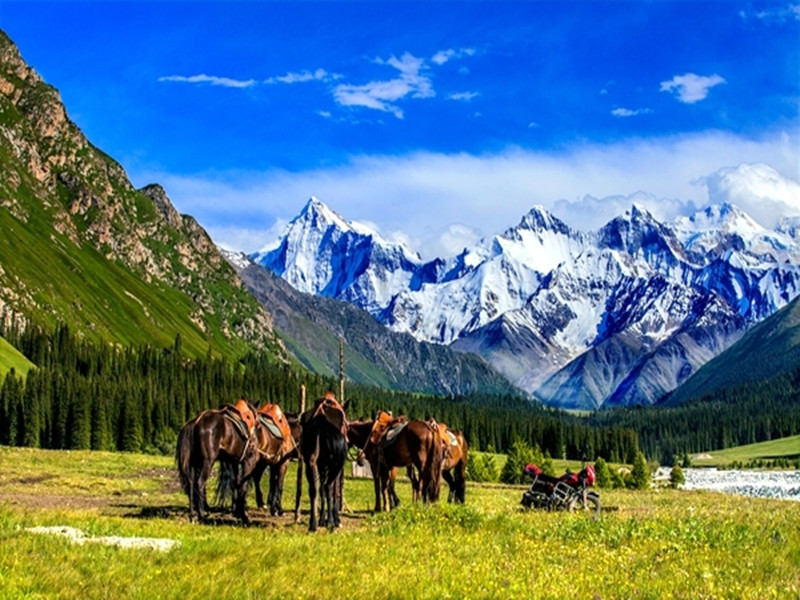 "Karajun" is a Kazakh language that means "the wilderness on the ridge". Kaljun mountain is a east-west rolling mountain,it is flanked by the gully comb mountain,ups and downs,the growth of dense primitive spruce forest. Between 2000 and 3600 meters above sea level,it is an alpine meadow grassland,which is about 25 kilometers wide from north to south and more than 40 kilometers long from east to west,with a total area of more than 1000 square kilometers. It is the most beautiful area of Tianshan grassland,completely retaining the original and pure natural appearance,grassland and forest blend,snow peaks and valley reflect,the scenery is very spectacular,showing the original beauty of snow ridge spruce.