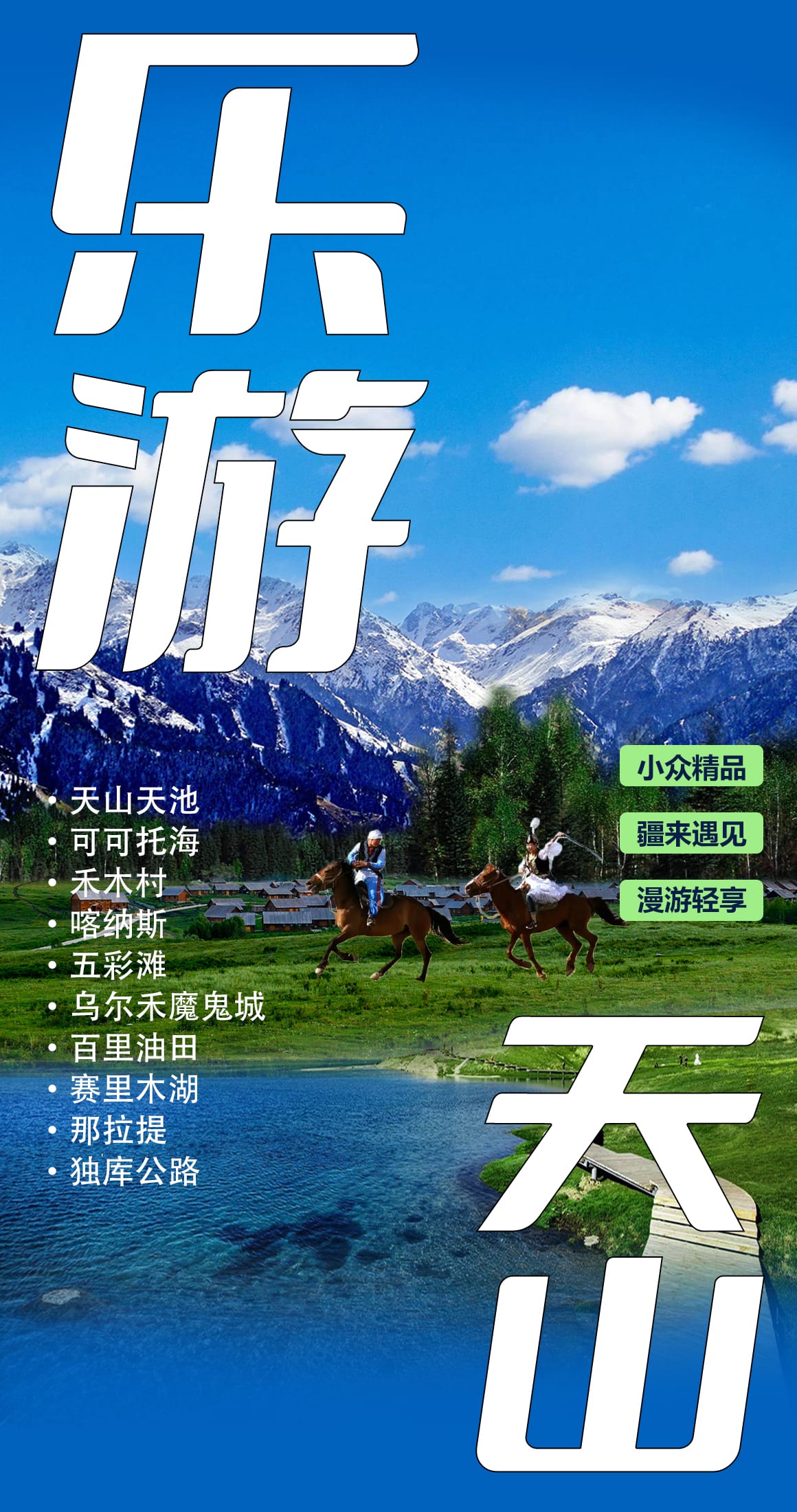 08:30—17:30 S101国防公路一路行来,铺在天山脚下的草甸草原,赤壁天湖有的凛凛清水,深深浅浅、色彩不一的百里丹霞。