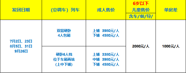 9、专列系包车性质,合同签订后车票不办理改签、分乘、变径或退票。无单独车票提供,我公司为每位游客提供旅游胸卡,写有姓名身份证号、车厢铺位号、导游姓名等。